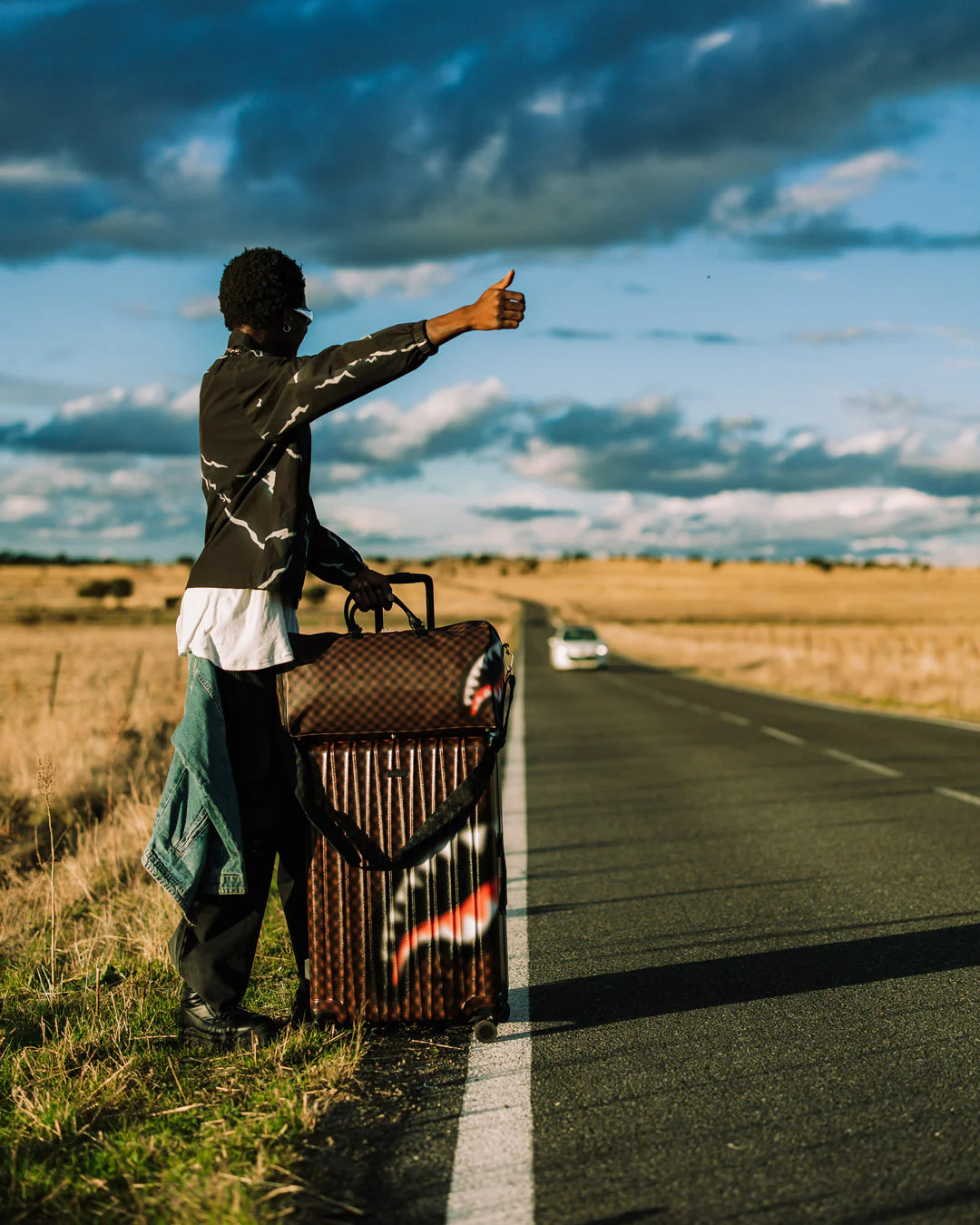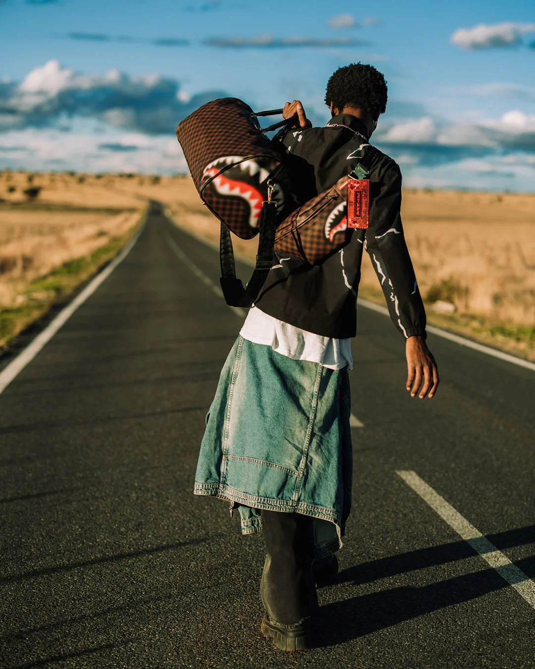 Dimensioni: 50,80 cm x 25,40 cm x 27,31 cm • Tasca con cerniera in metallo • Zip posteriori • Tasca con cerniera per sneakers • Cerniere dorate • Spallacci regolabili per una vestibilità personalizzata • Cerniere in metallo con finiture metalliche • Borsa di denaro Sprayground