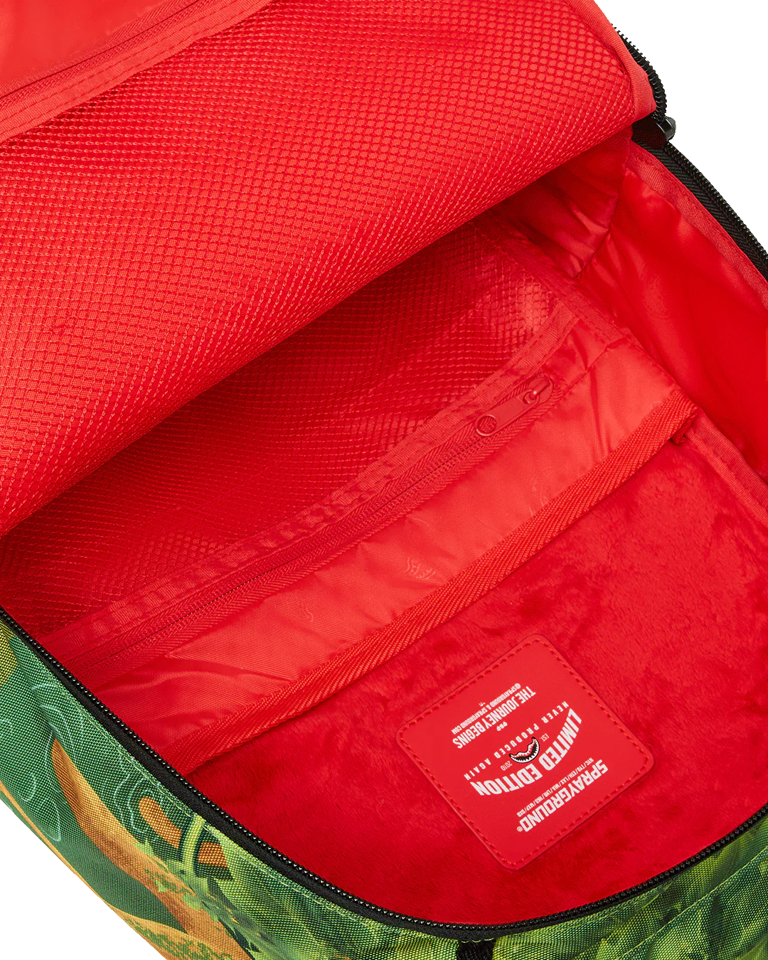 Dimensioni: 18" x 6" x 11,5" • Tasca anteriore con cerniera • Tasche laterali • Tasca portaoggetti con cerniera • Scomparto separato in velluto per occhiali da sole • Imbottitura posteriore ergonomica in rete • Cinghie regolabili per una vestibilità personalizzata • Cerniere dorate con ferramenta in metallo • Distintivo in metallo "Sprayground Authentic" • La manica posteriore scorrevole si collega al bagaglio a mano per liberare le mani