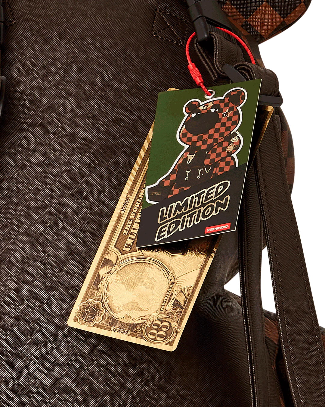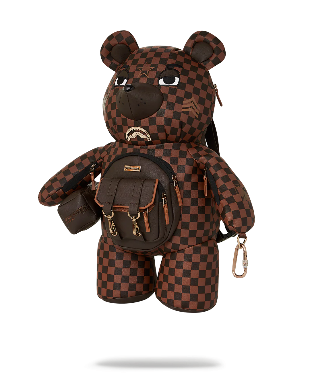 ZAINO SPRAYGROUND BROWN CHECKERED SPECIAL OPS TEDDY BEAR MARRONE